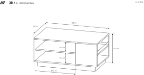 Dizajnový sektorový nábytok 3D - konferenčný stolík . Nábytok je vhodný do moderných interiérov a veľmi jednoducho a rýchlo je možné zostaviť požadovanú zostavu. Momentálne trendové farebné prevedenie dub zlatý/biela mat. Materiál je kvalitná laminovaná drevotrieska h 16 mm, odolná voči poškriabaniu a vlhkosti. Hrany sú na predĺženie životnosti olepené ABS páskou.