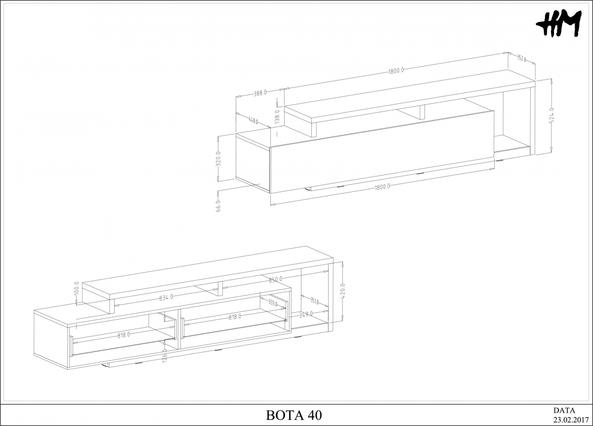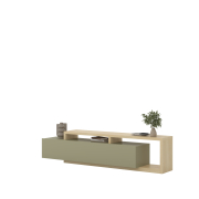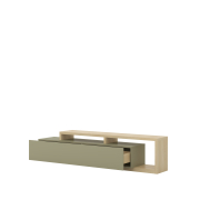 Funkčnosť na prvom mieste: Priestranný TV stolík s otvorenými aj uzavretými časťami elegantne skryje kabeláž a elektroniku, zatiaľ čo závesné prvky poskytnú miesto pre knihy či dekorácie.