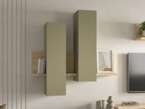 Funkčnosť na prvom mieste: Priestranný TV stolík s otvorenými aj uzavretými časťami elegantne skryje kabeláž a elektroniku, zatiaľ čo závesné prvky poskytnú miesto pre knihy či dekorácie.