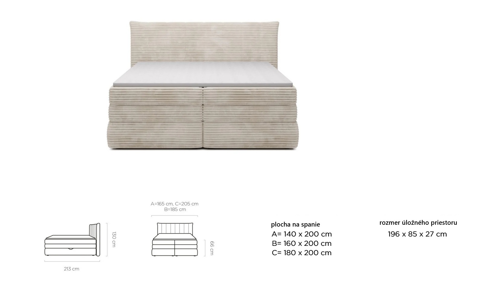 Nad úložným priestorom sa nachádza bonellová pružinová vrstva, ktorá tvorí pevný a stabilný základ celej postele. Táto vrstva zabezpečuje rovnomerné rozloženie hmotnosti tela, zvyšuje nosnosť lôžka a prispieva k dlhej životnosti konštrukcie.