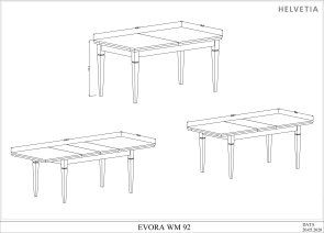 EVORA sektorový nábytok - jedálenský rozkladací stôl 24D1JU92 od firmy HELVETIA. Krásne farebné prevedenie dub dunin je výsledkom najnovších trendov bytových dizajnérov. Čo sa týka štýlu je možné nábytok EVORA zaradiť do modernejšej verzie klasického dizajnu, je vhodný do obývacej izby alebo jedálne. Plát je vyrobený z certifikovanej laminovanej DTD, nohy z prírodného dreva.