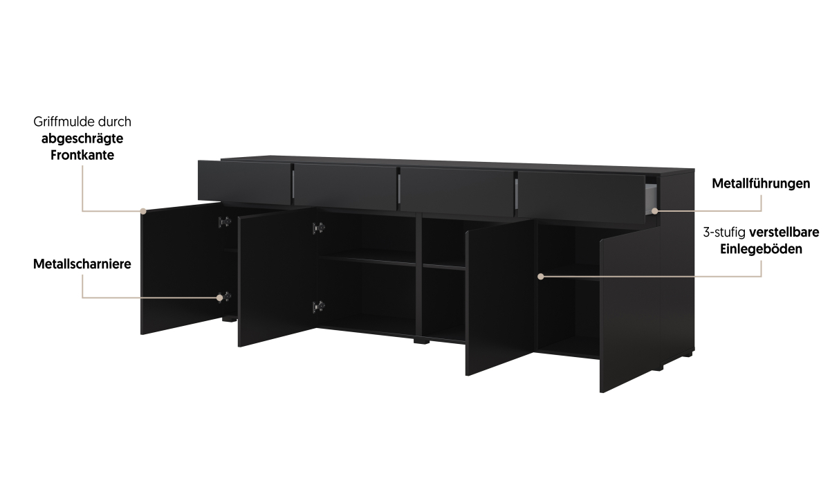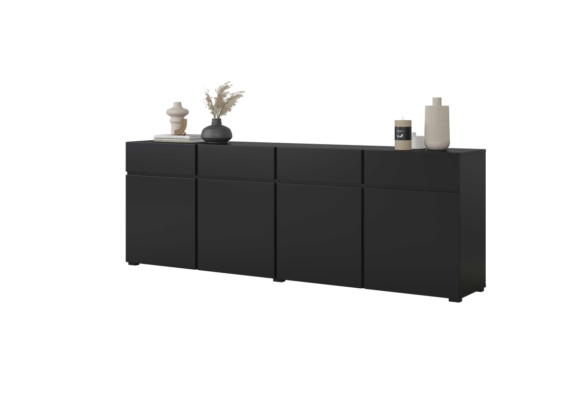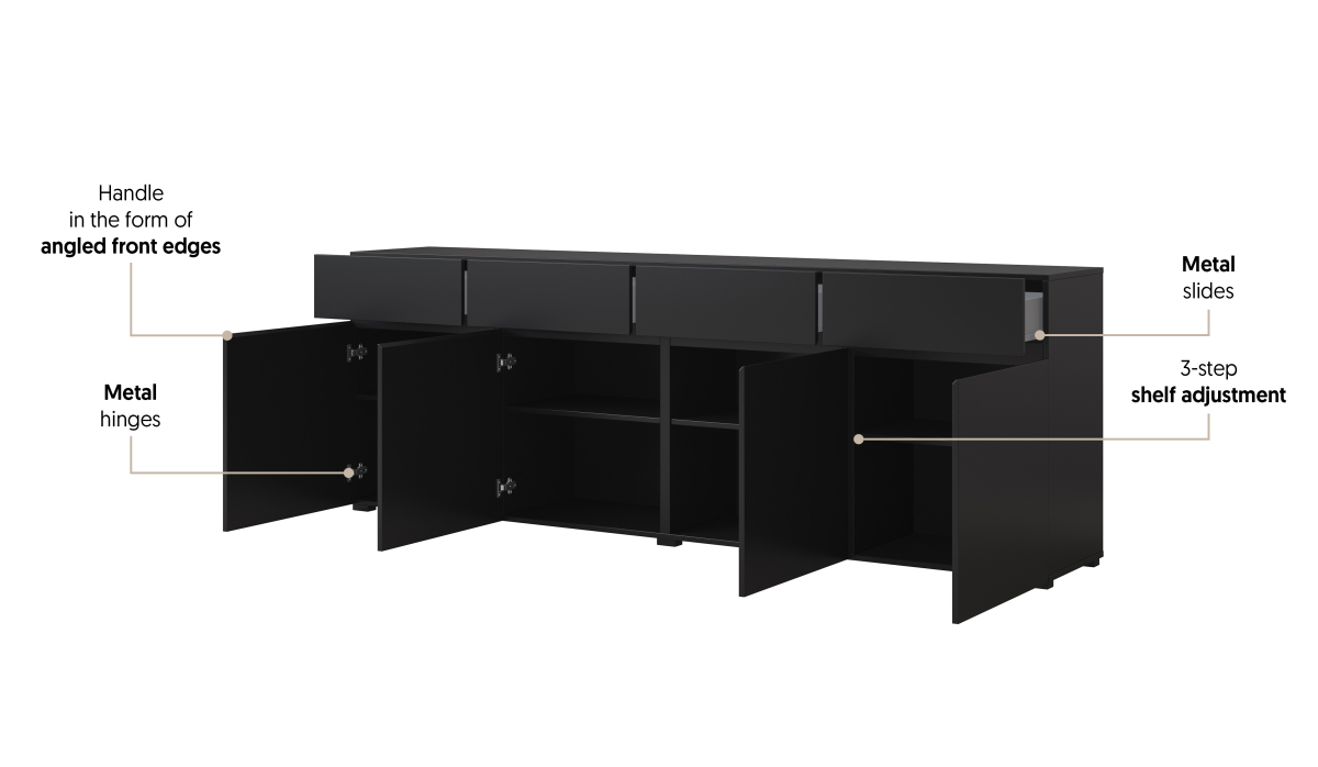 čierny onyx 24W3MY..,predstavuje moderné, elegantné a flexibilné riešenie pre zariadenie štýlovej obývačky. Minimalistický dizajn, čisté línie a luxusný matný povrch v odtieni čierneho onyxu vytvárajú nadčasový vzhľad, ktorý dokonale zapadne do moderných, industriálnych aj loftových interiérov.