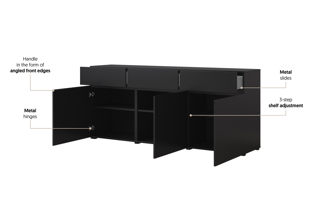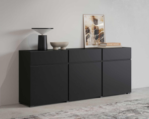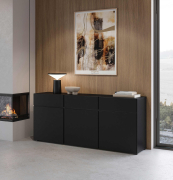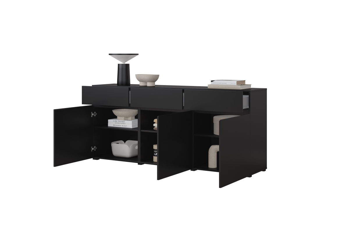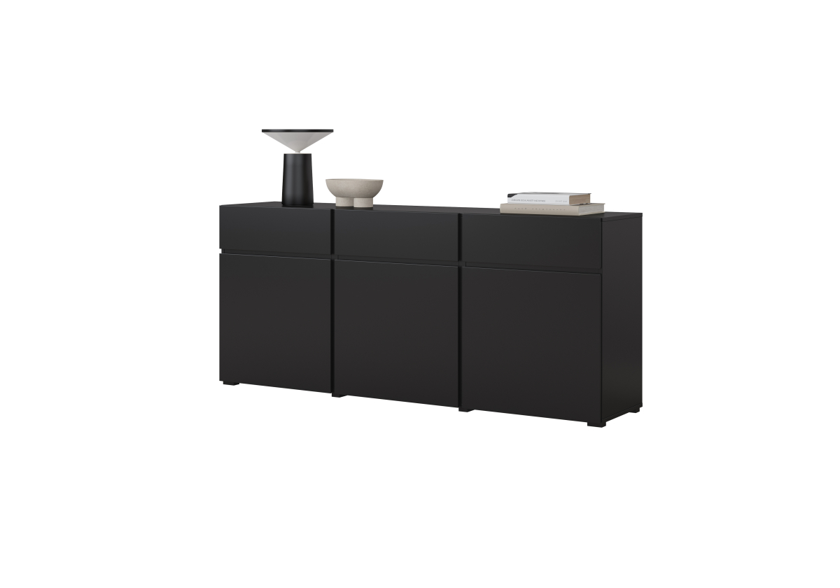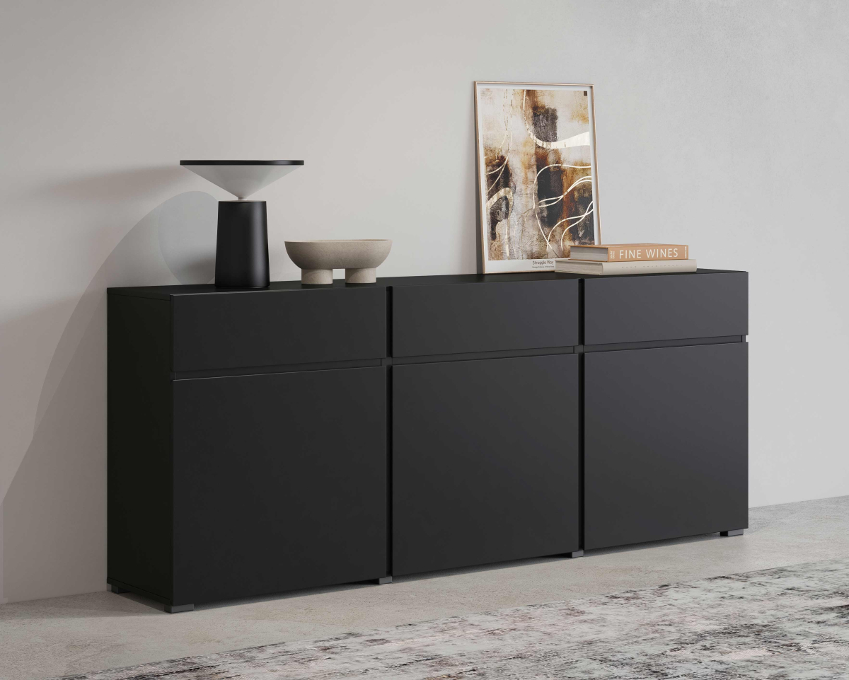 čierny onyx 24W3MY..,predstavuje moderné, elegantné a flexibilné riešenie pre zariadenie štýlovej obývačky. Minimalistický dizajn, čisté línie a luxusný matný povrch v odtieni čierneho onyxu vytvárajú nadčasový vzhľad, ktorý dokonale zapadne do moderných, industriálnych aj loftových interiérov.