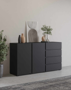 Premeňte svoju obývačku na galériu moderného dizajnu. Dizajn, ktorý definuje priestor. Sektorový nábytok ASYMETRIC - komoda 2D4S, č.42 od renomovaného výrobcu IMS Helvetia predstavuje dokonalú symbiózu čistých línií, funkčnosti a odvážneho matného dizajnu. Tento systém je navrhnutý pre tých, ktorí hľadajú výnimočnosť a chcú vystúpiť z radu konvenčného nábytku. Kolekcia ASYMETRIC sa vyznačuje bezúchytkovým systémom a unikátnym členením frontov, ktoré vytvára dynamický, asymetrický vizuál. Korpusy aj dvierka sú vyrobené z certifikovanej, laminovanej drevotriesky odolnej voči poškriabaniu, ohranené ABS páskou na predĺženie životnosti.