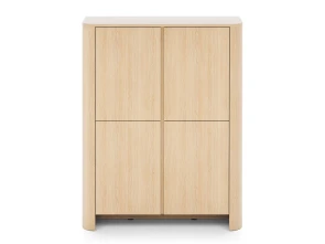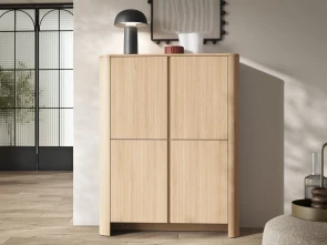 Objavte spojenie prírody a moderného dizajnu s vysokou policovou komodou Bari K103 v dekore dub Vicenza. Štyri dvierka ukrývajú prehľadný úložný priestor na oblečenie, doplnky aj dokumenty. Minimalistický vzhľad, jemne zaoblené hrany a systém push-to-open zabezpečia jednoduché otváranie bez úchytiek a štýlový, elegantný interiér.