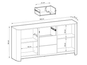 Doprajte svojej obývačke moderný a elegantný vzhľad s komodou BARI KSZ168 v teplom dekore dub Vicenza. Trojica zásuviek a dvere po stranách skrývajú úložný priestor na všetko, čo potrebujete, od dokumentov po dekorácie.