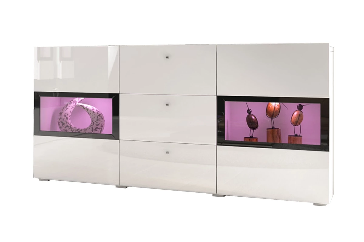 Komoda BAROS 26 vnesie do vašej obývačky sviežosť v podobe bielej čistej farby. Nechá vyniknúť vašim dekoráciám, ktoré si nájdu svoje miesto za presklenými dvierkami s čiernym rámikom. Zásuvky ukryjú množstvo drobností.
