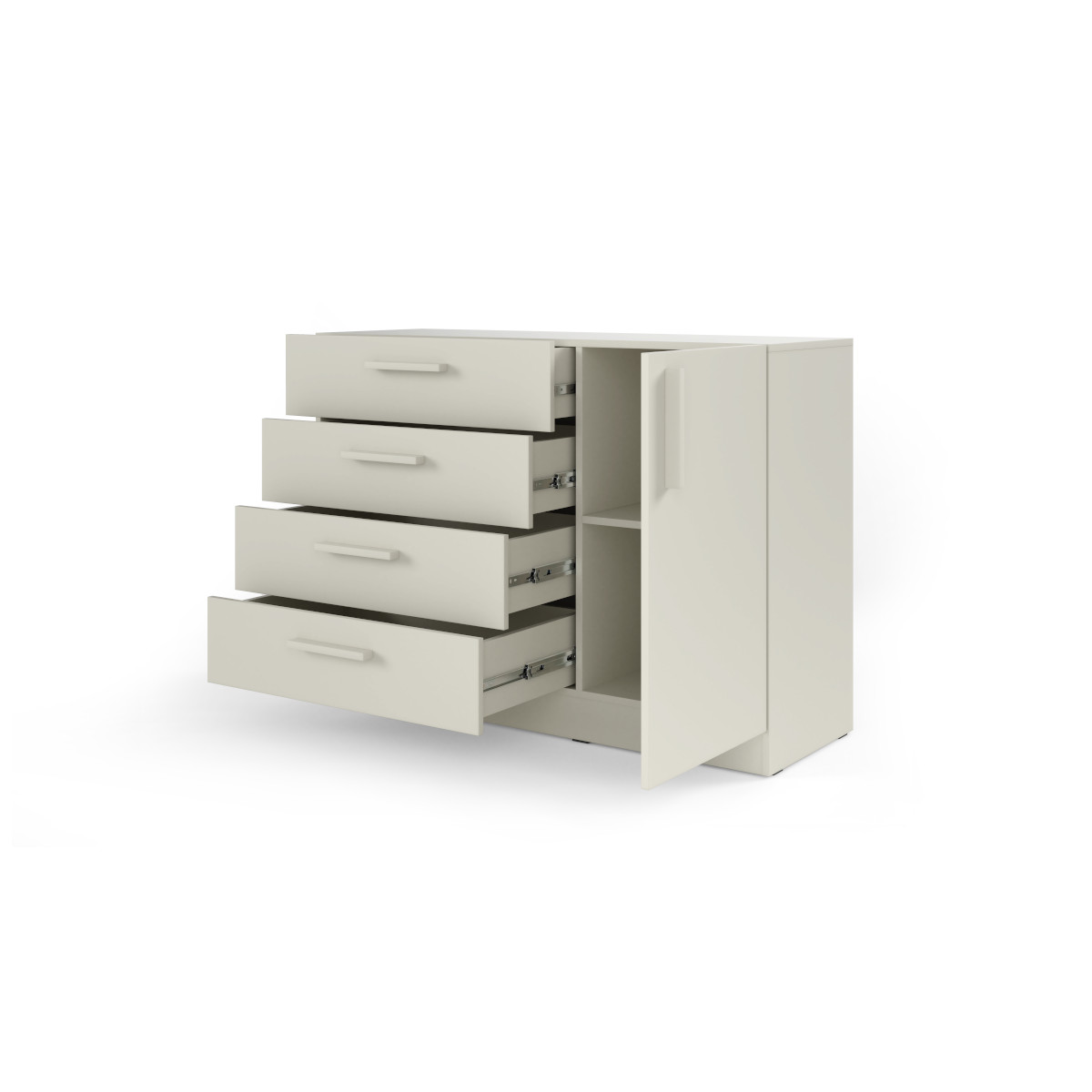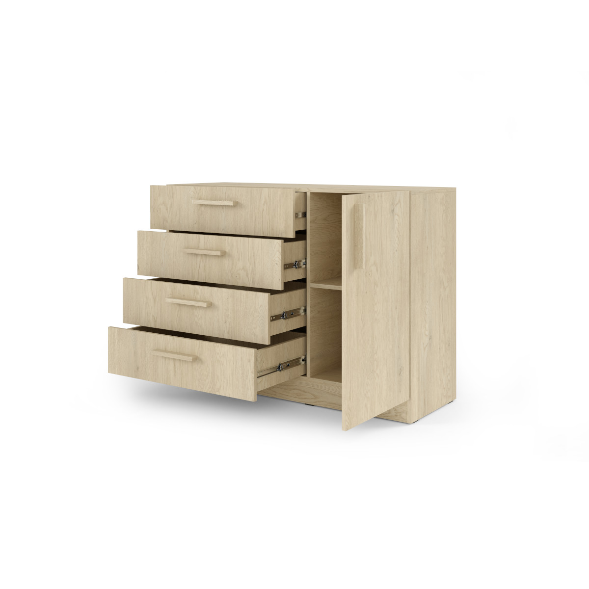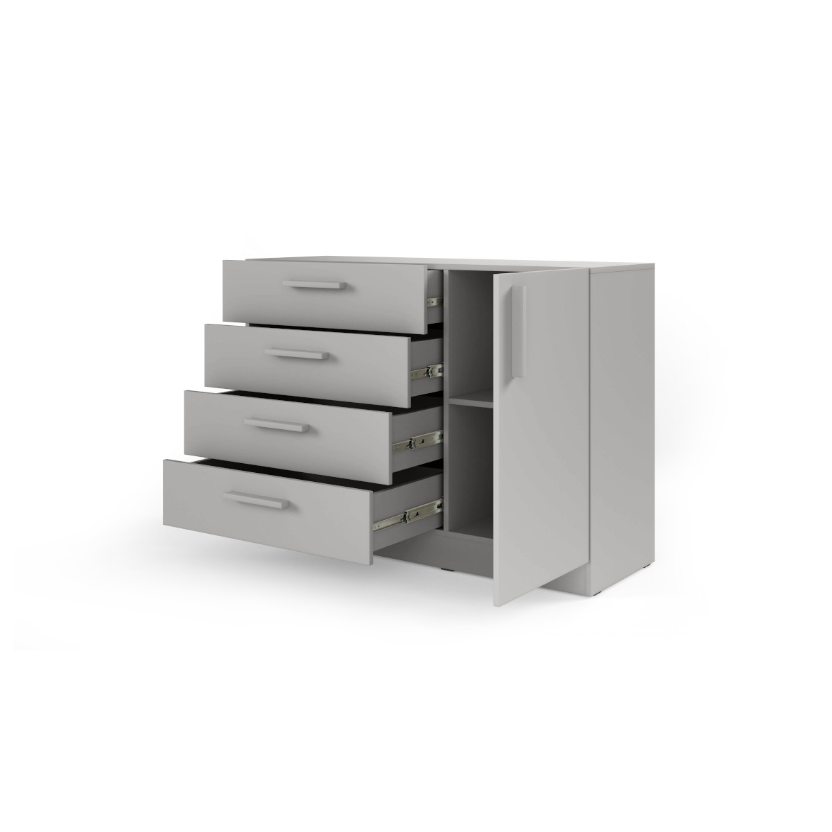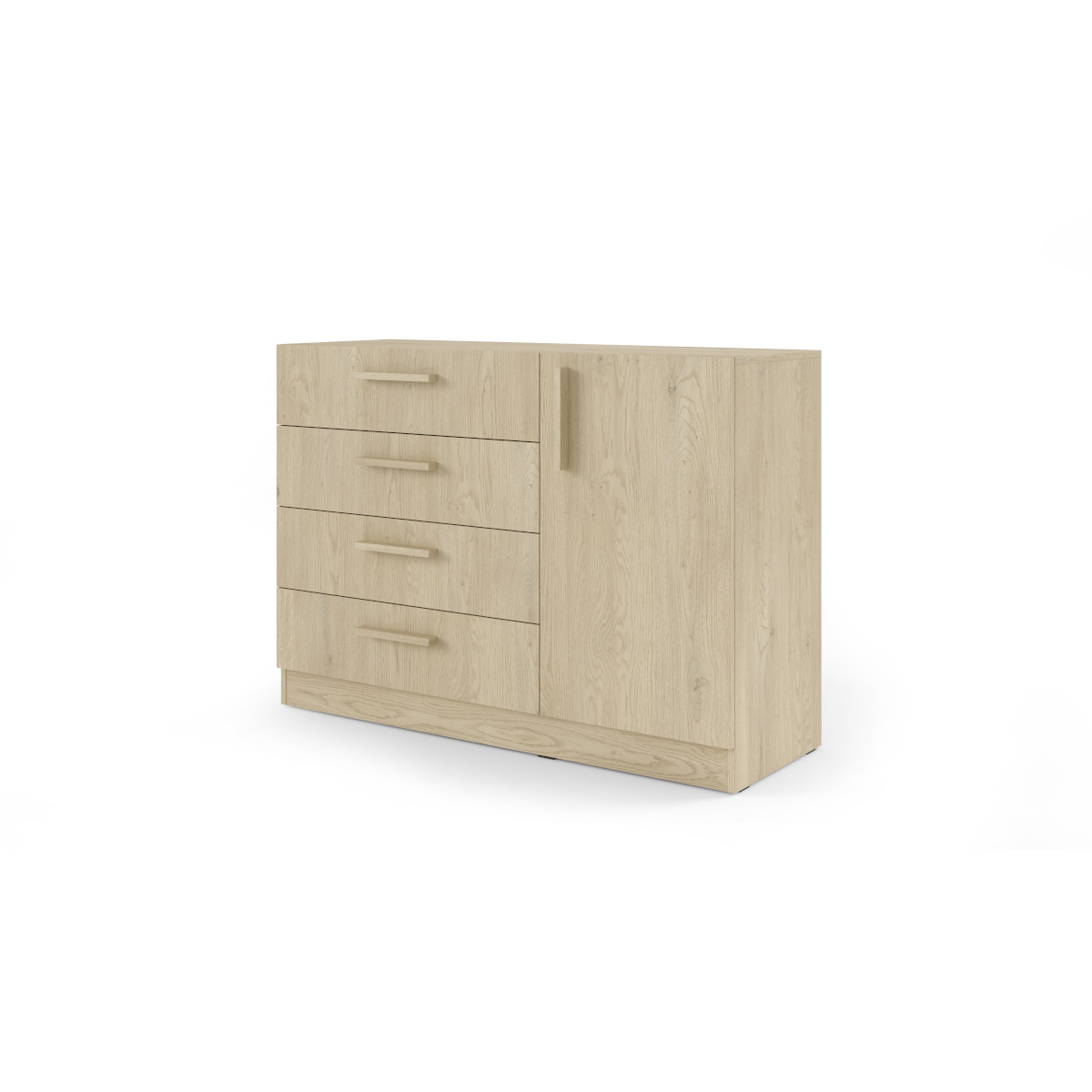 Komoda BRAGA BRK2 prináša praktické a štýlové riešenie úložného priestoru do spálne, hosťovskej, študentskej alebo detskej izby. Kombinuje zásuvky a skrinku s policou, čo umožňuje prehľadné uloženie oblečenia, drobných doplnkov aj väčších predmetov.