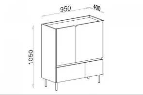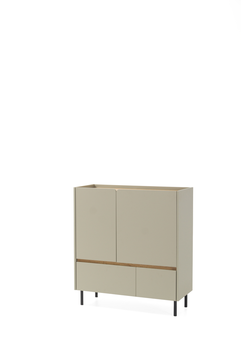 - Komoda stojí na vysokých nožičkách, ktoré jej dodávajú ľahký a elegantný vzhľad a uľahčujú údržbu podlahy