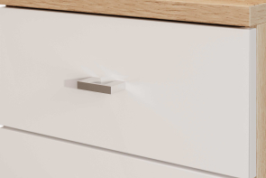 Kúpeľňový nábytok STING - moderný nábytok do kúpeľne vyrobený vo výbornej kvalite prevedenia. Farebné prevedenie dub artisan - biely lesk. Materiál korpus - certifikovaná laminovaná drevotrieska, dvere - kvalitná fólia na MDF vo vysokom lesku. Úchytky aj nožičky plastové.