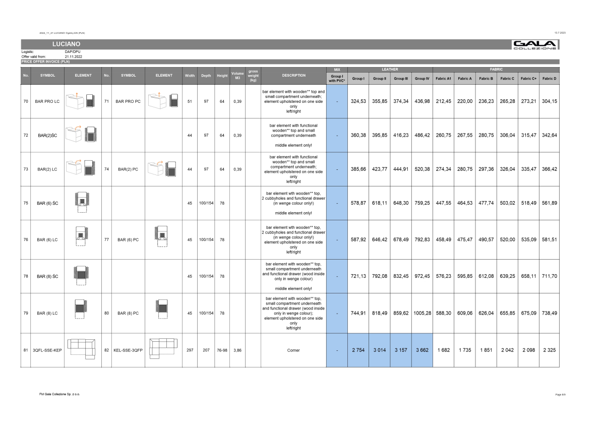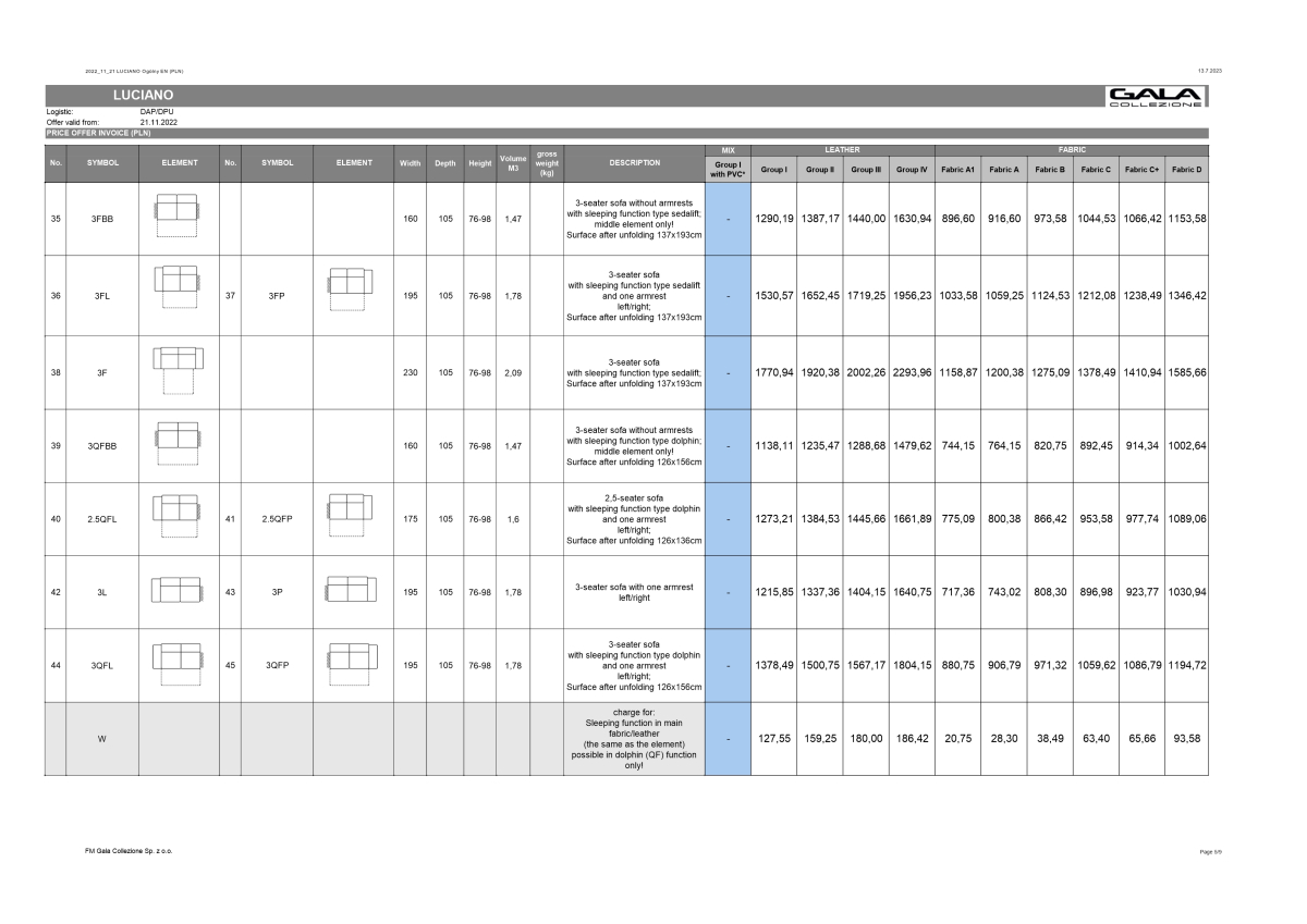Vo fotogalérii nájdete všetky moduly aj s cenami / ceny sú uvedené s DPH, v cenníku sú štyri cenové skupiny koží + šesť cenových skupín látok - všetky látky a kože nájdete ak si kliknete na vzorkovník /.