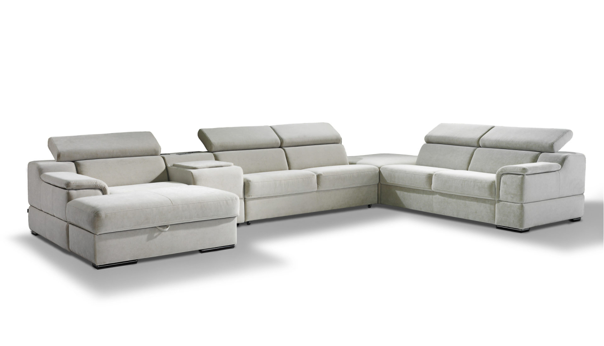 Sektorová sedacia súprava LUCIANO od firmy GALA COLLECTION - krásna, pohodlná, rohová sedačka s nastaviteľnými opierkami na hlavu, úložným priestorom a rozťahovaním /rozkladací mechanizmus delfín, vhodný na príležitostné spanie /. Rozmery sedacej súpravy LUCIANO z obrázku šírka / hĺbka / výška 310/185/76-98 cm, výška sedenia 46 cm, výška chrbtovej opierky 41-63 cm.