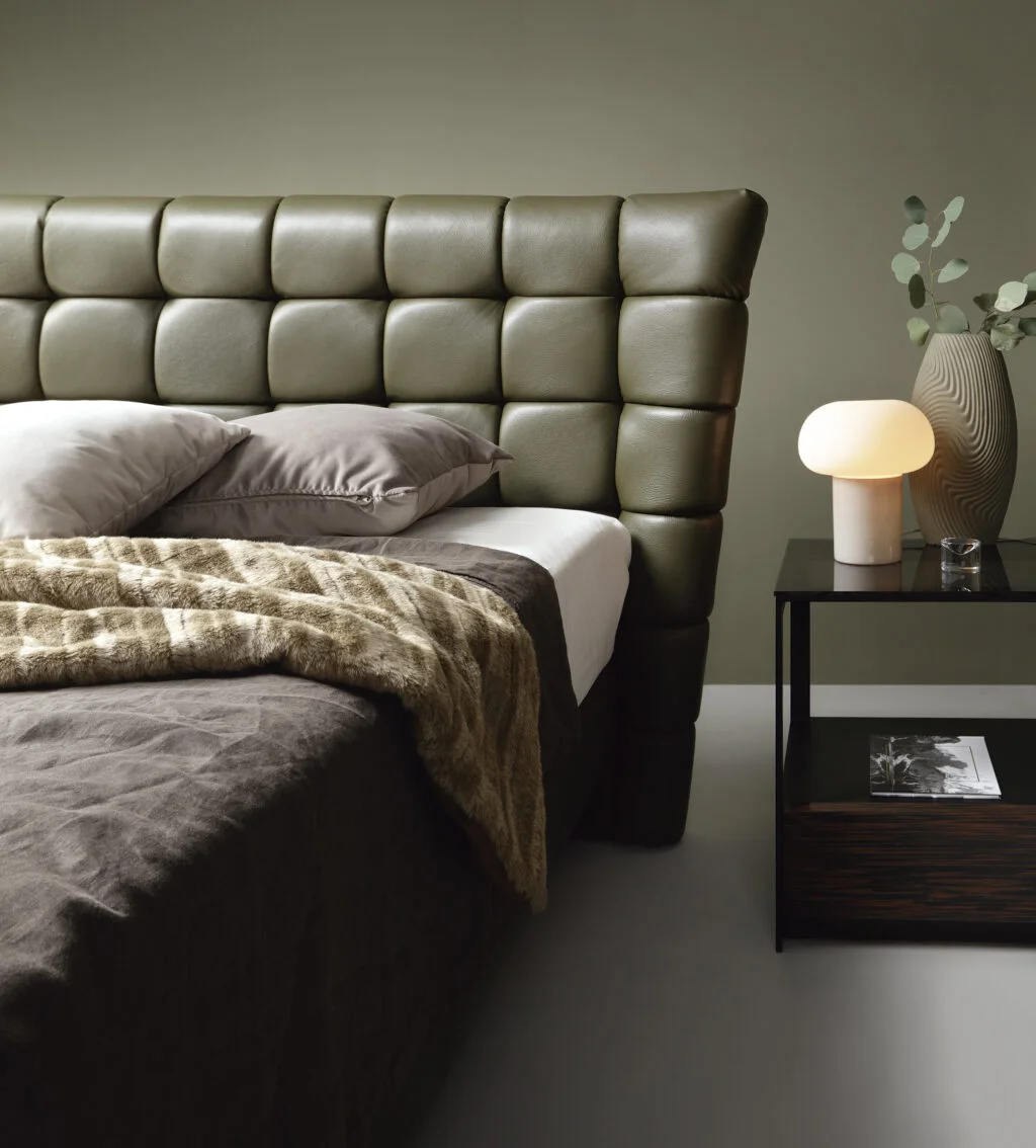 Posteľ INFERNO je extravagantný a moderný model, ktorý zaujme milovníkov netradičných a loftových interiérov. Unikátne prešívané čelo s množstvom detailov vytvára efektný vizuálny stredobod spálne a dodáva miestnosti luxusný a štýlový nádych. Posteľ stojí na vysokých štíhlych nohách, ktoré dodávajú dizajnu ľahkosť a uľahčujú upratovanie, a je dostupná v širokom výbere kvalitných látok a pravých koží, takže ju možno dokonale prispôsobiť štýlu vašej spálne. Tento model je ideálny pre tých, ktorí chcú odvážny a netradičný interiér, milovníkov loftového či moderného štýlu, a zároveň hľadajú luxusný dizajn za prijateľnú cenu.