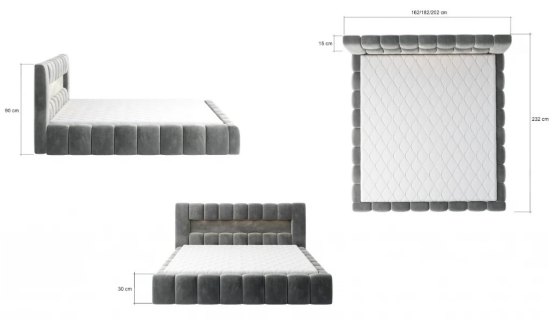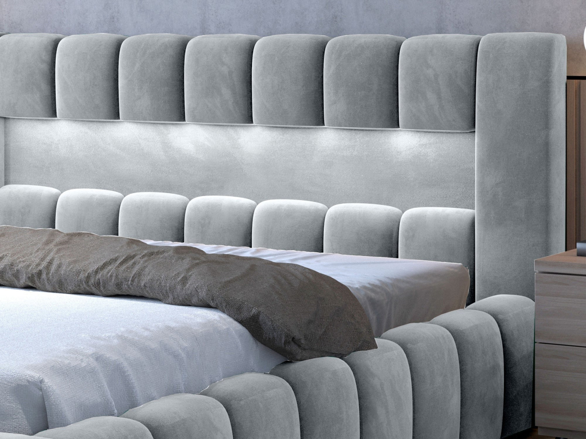 - Jednoduchý moderný dizajn s LED osvetlením – čisté línie a jemné prešívanie dodávajú posteli nadčasový vzhľad a LED svetlo vytvára príjemnú atmosféru.