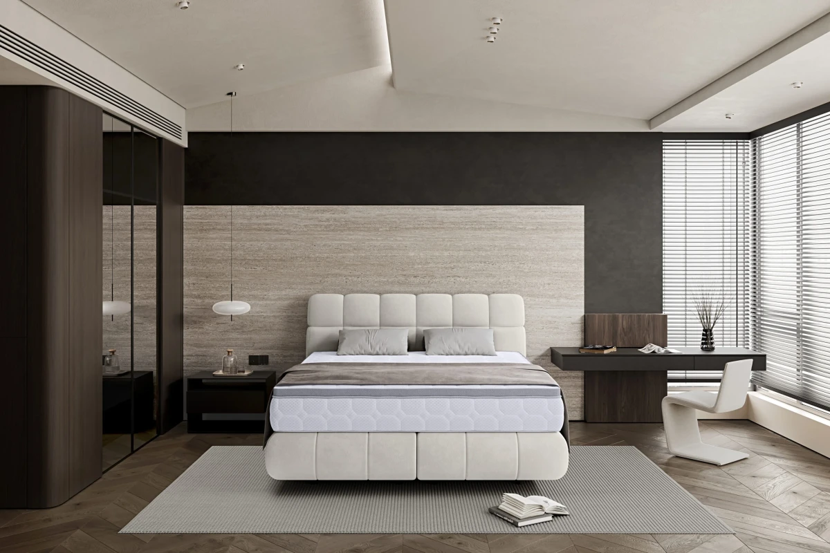 Posteľ NOBU v kombinácii s matracom Grand Montiano ponúka dokonalú rovnováhu medzi dizajnom, funkčnosťou a komfortom – pretože skutočné pohodlie sa začína v spálni.
