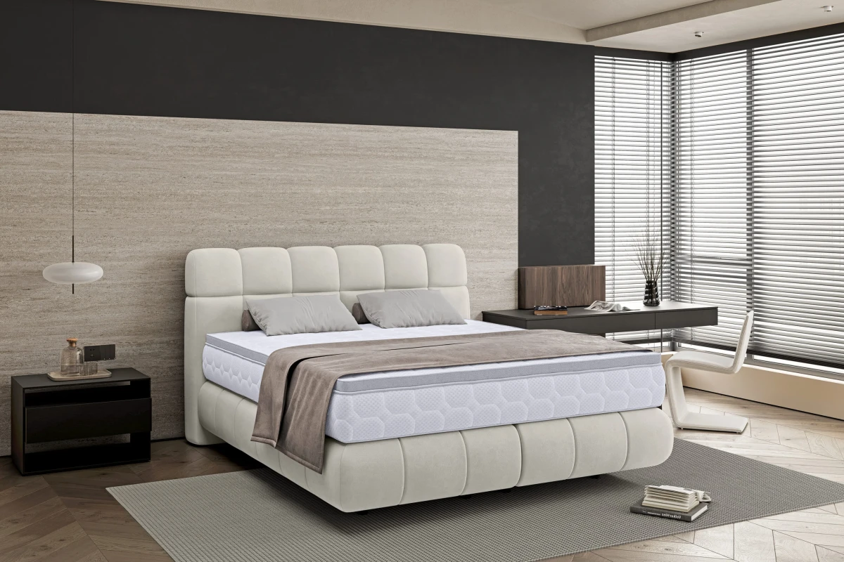 Základ postele tvorí pevná konštrukcia, ktorá zabezpečuje stabilitu a dlhú životnosť. Komfort spánku zvyšuje kvalitný matrac Grand Montiano, ktorý kombinuje 9-zónové taštičkové pružiny pre presnú oporu tela a bonellové pružiny pre vysokú odolnosť a dlhú životnosť. Dokonalé pohodlie zabezpečuje vysokoelastická pena, ktorá sa ideálne prispôsobuje tvaru tela.