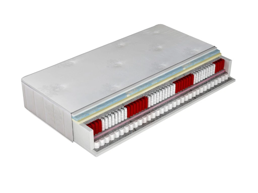 - Polyuretánová pena – stabilná vrstva, ktorá podporuje jadro matraca a zvyšuje trvanlivosť.