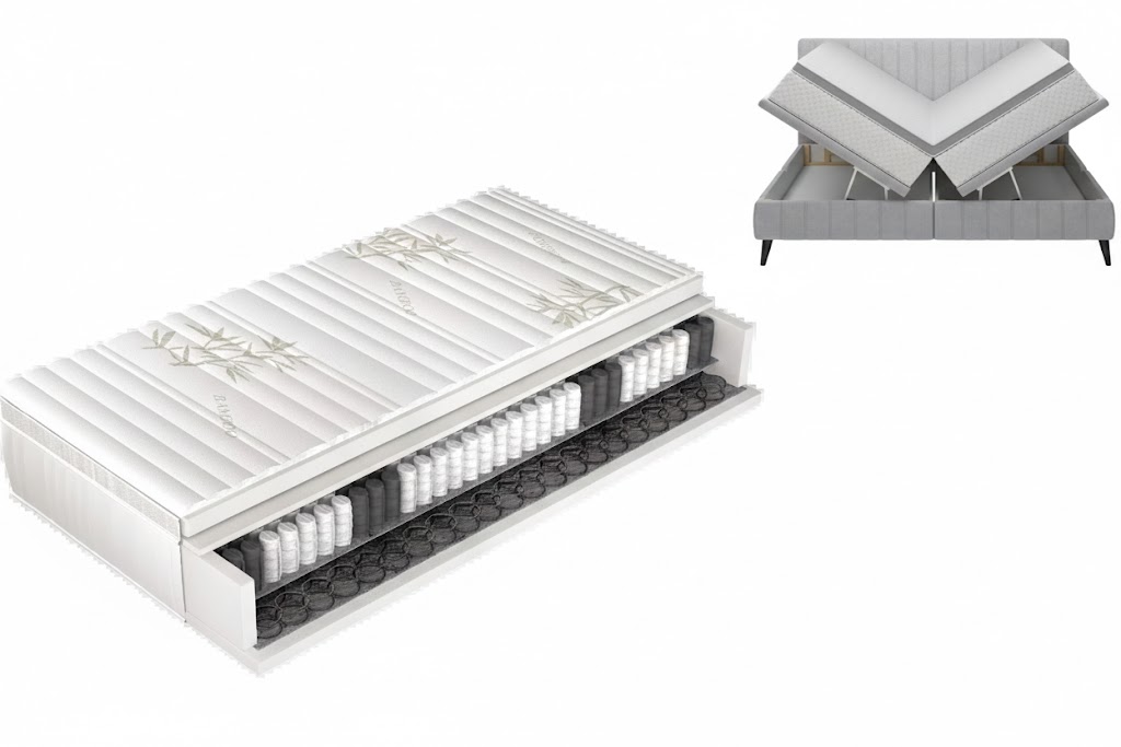 Tento matrac je navrhnutý ako dva samostatné matrace spojené vrchnou vrstvou, čo umožňuje jeho flexibilné a pohodlné použitie na manželských výklopných posteliach s úložným priestorom. Hlavnou výhodou je, že spoj medzi matracmi nevytvára nepríjemný stredový priehlb ani tvrdú hranicu, takže si môžete vychutnať spánok po celej šírke postele bez pocitu predelenia.