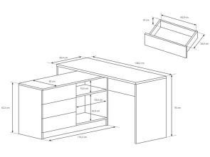 - Kompaktné hĺbky a vhodné rozmery zaručujú, že stôl nezaberie zbytečne veľa priestoru, no poskytuje dostatočnú plochu pre prácu či štúdium.