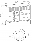Sektorový nábytok NOVA - komoda KSZ 104 v originálnom dizajne vo farebnom prevedení čierna. V nábytku NOVA sú vidieť momentálne najnovšie trendy v dizajne nábytku, takisto boli použité kvalitné materiály - na korpusoch certifikovaná 16 mm drevotrieska odolná voči poškriabaniu, na dverách 18 mm MDF doska riflovaná, úchytky sú hliníkové v zlatom farebnom prevedení, ABS páskou sú olepené všetky hrany, kvalitné pánty Hafelle metalla, podnož kovová 18mm x 18mm v čiernej farbe.