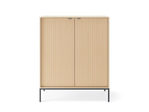 Tento neutrálny odtieň dub Vincenza je ideálny na kombinovanie s kontrastnými prvkami, čo je v tomto modeli využité na čiernych kovových nožičkách a úchytkách, ktoré dodávajú komode moderný a štýlový vzhľad. Výška nožičiek: 20 cm uľahčuje údržbu a zároveň opticky odľahčuje nábytok.