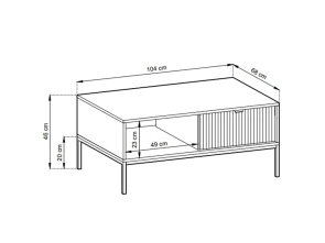 Stolík ponúka praktickú zásuvku na odloženie drobností a otvorenú poličku, ktorá je vhodná na knihy, ovládače či dekorácie. Nábytok stojí na čiernych kovových nožičkách, ktoré vytvárajú moderný kontrast a dodávajú stolíku ľahký, vzdušný vzhľad.