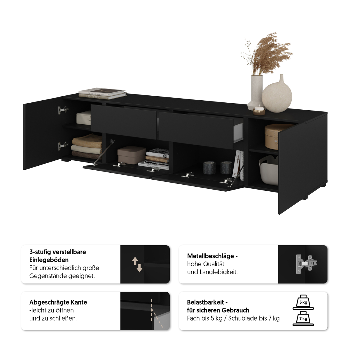 Modulárna variabilita: Široká škála prvkov (TV komody, vitríny, skrinky) vám umožní vyskladať si zostavu presne podľa rozmerov vašej obývačky.