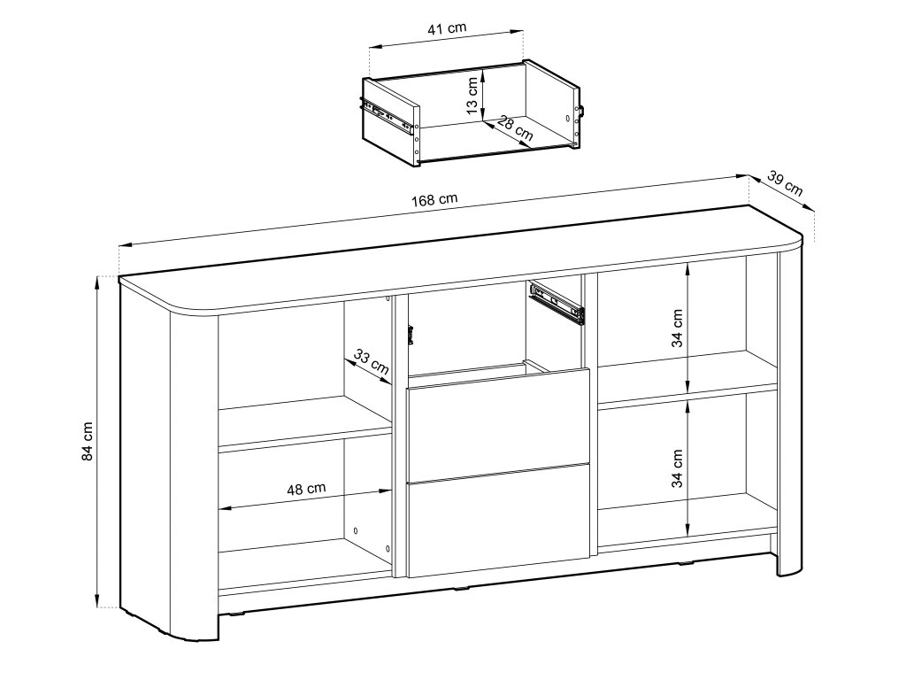 Komoda s tromi zásuvkami a dvoma dvierkami poskytuje dostatok miesta na usporiadanie všetkého potrebného pre vašu obývaciu izbu.