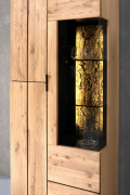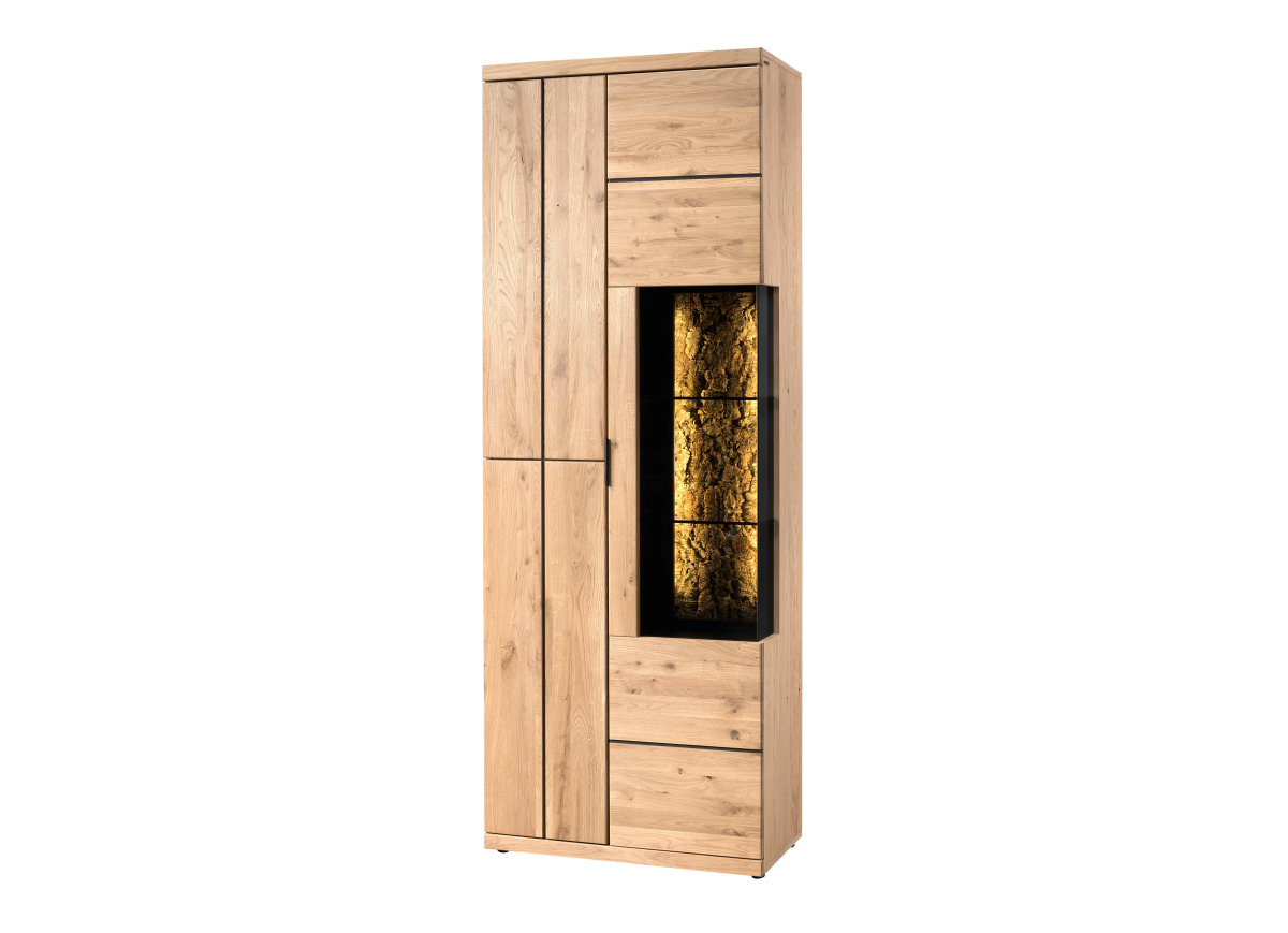 Obývacia stena NAPOLI zostava 1, určená pre náročných zákazníkov, obývací nábytok v kombinácii masívneho dubu, prírodnej dýhy a lamina, ktorý sa vyznačuje výbornou kvalitou prevedenia, použitých materiálov a dizajnu, od popredného európskeho výrobcu SZYNAKA. Materiál, z ktorého je nábytok vyrobený dvere - prírodný dubový masív kartáčovaný vo farebnom prevedení dub bianco a impregnovaný prírodným olejom. Korpusy - certifikovaná drevotrieska z vonkajšej strany potiahnutá prírodnou dýhou vo farebnom prevedení dub boston, z vnútornej strany je kvalitné lamino vo farebnom prevedení dub boston. Pánty / výrobca FURNISOL /, a guličkové vedenie v šuflíkoch je vybavené systémom pomalého zatvárania. Sklo vo vitrínach je tvrdené v hrúbke 4 mm, sklenné police v hrúbke 8 mm. Rámiky na dverách, stopky a úchytky sú kovové v čiernej farbe.