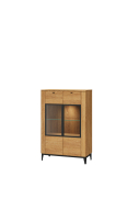 Obývacia stena z prírodného dubového dreva PORTO, vo farebnom prevedení dub zlatý-čierna matná. Výrobca SZYNAKA opäť nenechal nič na náhodu, okrem moderného prepracovaného dizajnu, výbornej kvality prevedenia a použitých materiálov, zaujme aj svojou funkčnosťou a praktickosťou. Nábytok PORTO je jedinečný, veľmi pevný a odolný a vďaka tomu vám bude slúžiť dlhé roky. Materiál z ktorého je nábytok vyrobený, dvere - prírodný dubový masív kartáčovaný vo farebnom prevedení dub zlatý a impregnovaný prírodným olejom. Korpusy - certifikovaná drevotrieska z vonkajšej strany potiahnutá prírodnou dýhou, z vnútornej strany je kvalitné lamino. Pánty / výrobca FURNISOL /, a guličkové vedenie v šuflíkoch vybavené funkciou pomalého zatvárania, sklo vo vitrínach je dymové tvrdené, rámiky na dverách, stopky, nožičky a úchytky sú kovové v čiernej farbe.