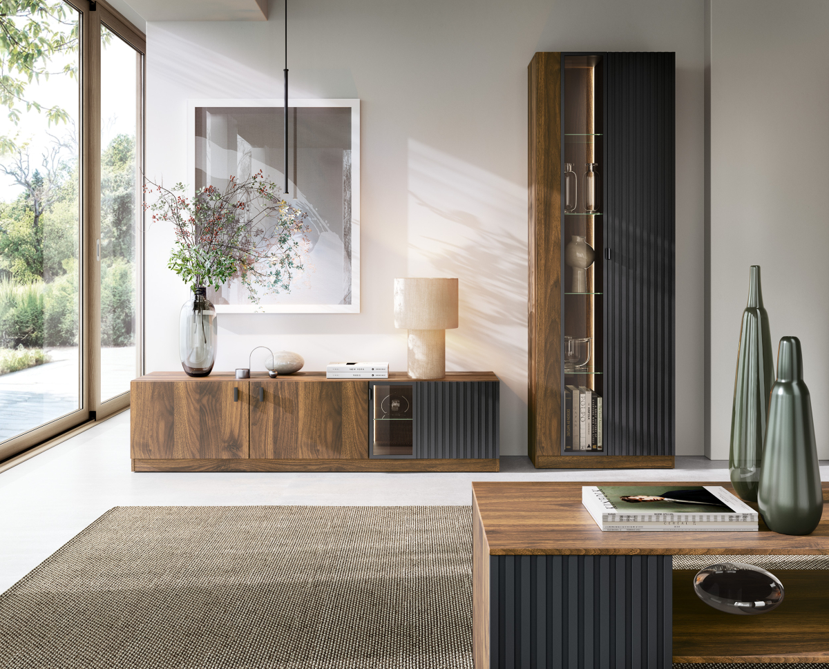 kombinovať vitríny, TV stolík, komody a skrinky
