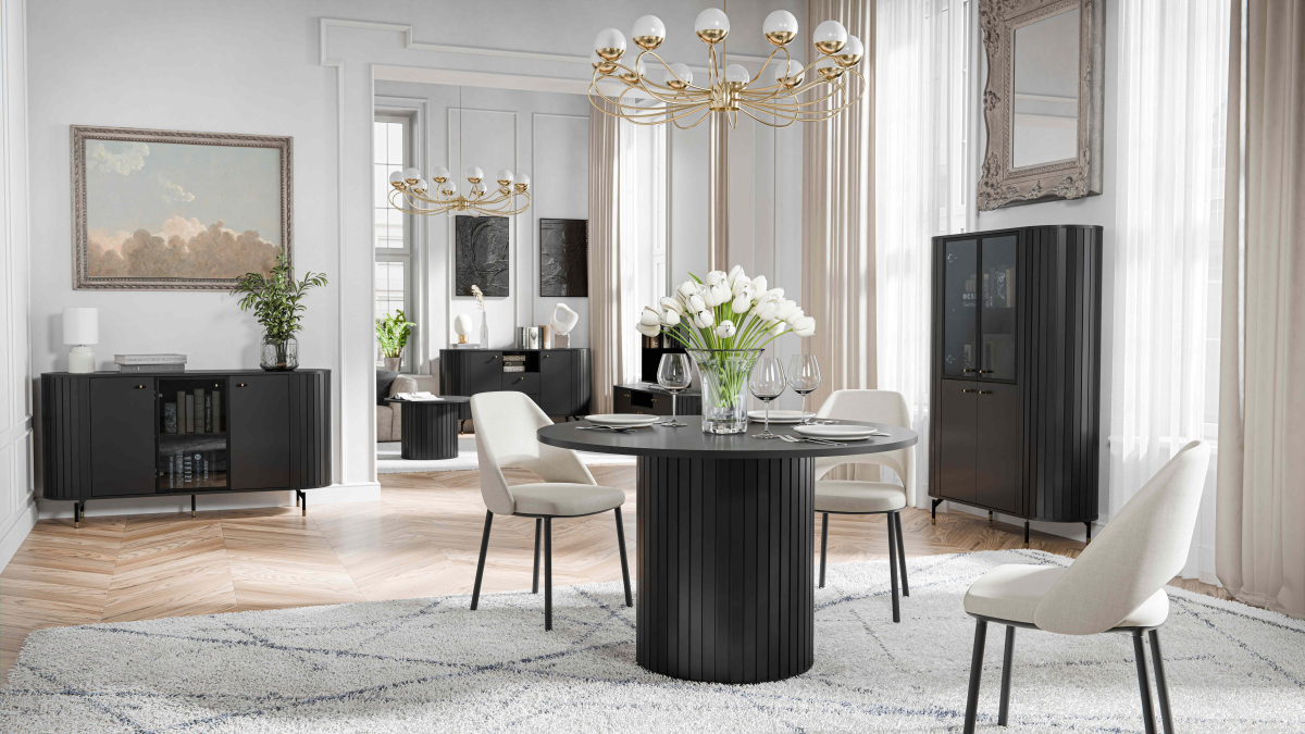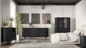 Moderná obývacia stena ZANTE kašmír - moderný obývací nábytok v trendovom originálnom dizajne a farebnom prevedení čierna. Materiál, z ktorého je nábytok vyrobený korpus - certifikovaná laminovaná drevotrieska v hrúbke 16mm, dvierka - certifikovaná laminovaná drevotrieska v hrúbke 16mm a lišty z MDF v hrúbke 16mm. Hrany korpusov a dvierok sú ohranené ABS páskou v hrúbke 0,5 mm. Nohy a úchytky sú kovové, sklo je zakalené v hrúbke 6 mm, výsuvy guličkové, pánty s funkciou pomalého zatvárania, možnosť dokúpiť LED osvetlenie za doplatok.