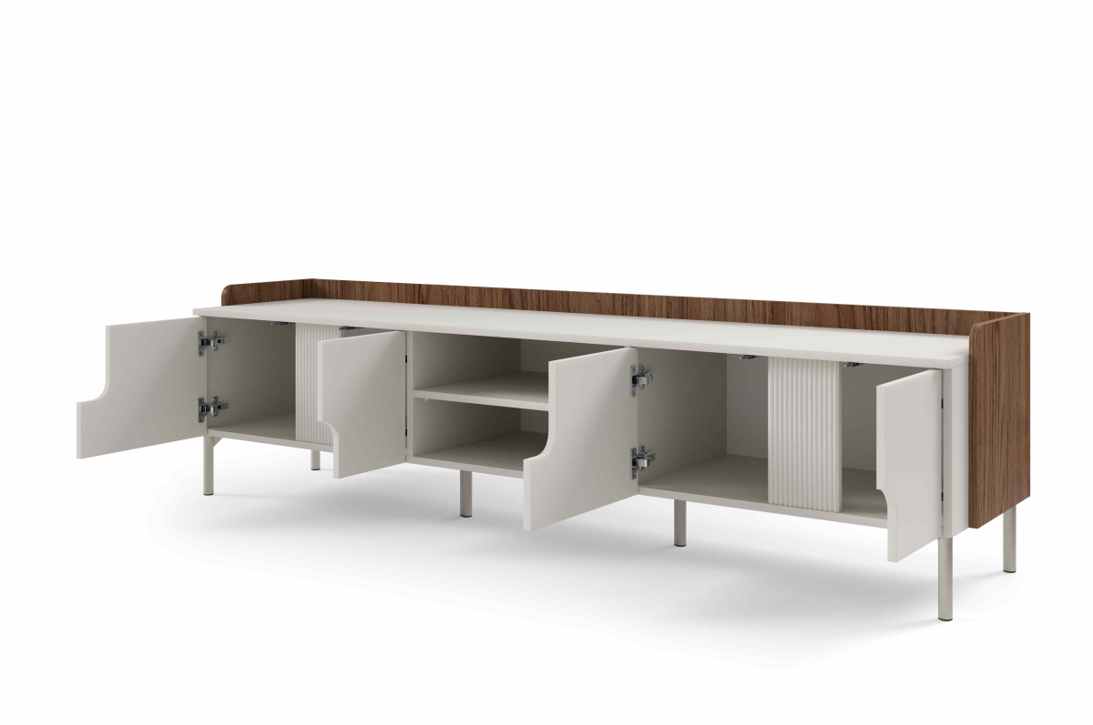 • štíhle nožičky: Celá zostava stojí na elegantných vysokých kovových nožičkách, čo dodáva nábytku ľahkosť a uľahčuje upratovanie (vhodné aj pre robotické vysávače).