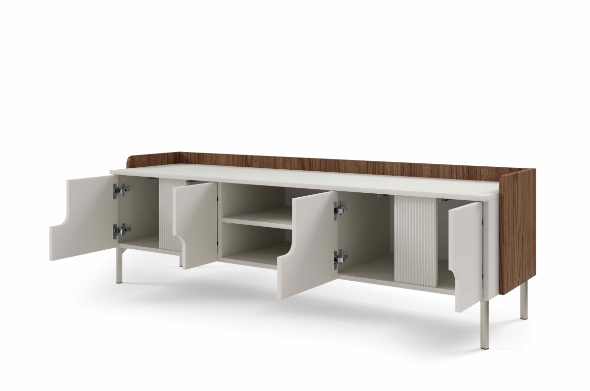 • štíhle nožičky: Celá zostava stojí na elegantných vysokých kovových nožičkách, čo dodáva nábytku ľahkosť a uľahčuje upratovanie (vhodné aj pre robotické vysávače).