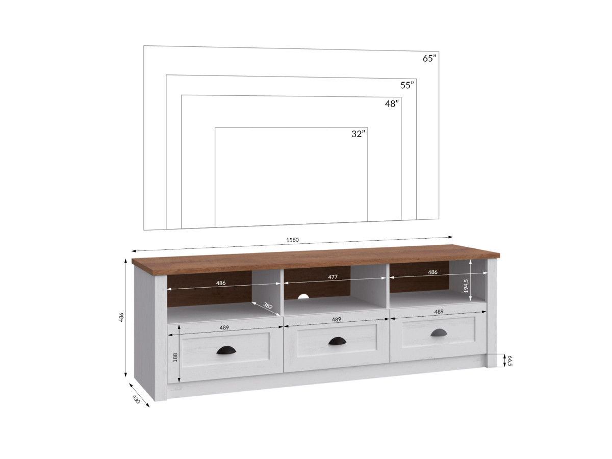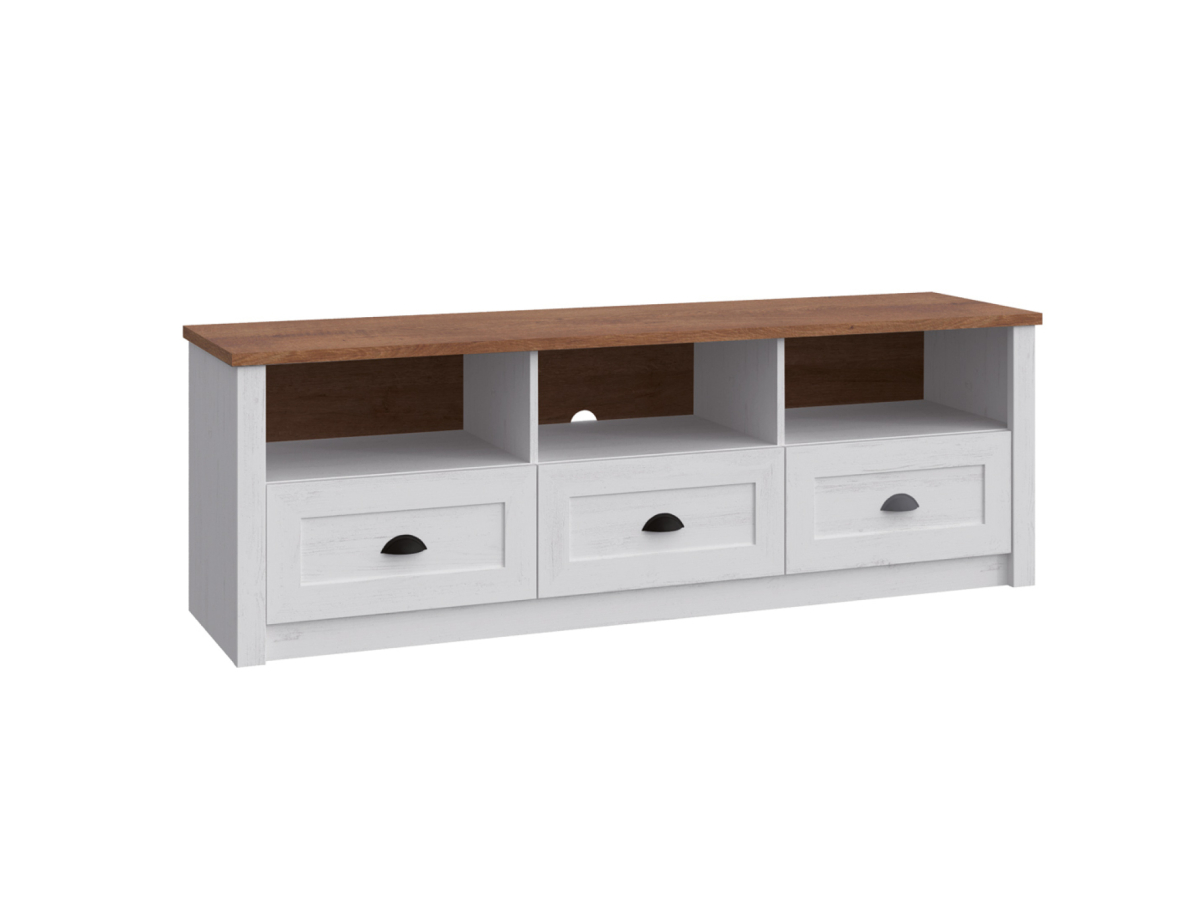 - zaujímavým kúskom nábytku je aj komoda s troma zásuvkami a otvorenými priehradkami. Komoda určená na umiestnenie TV.