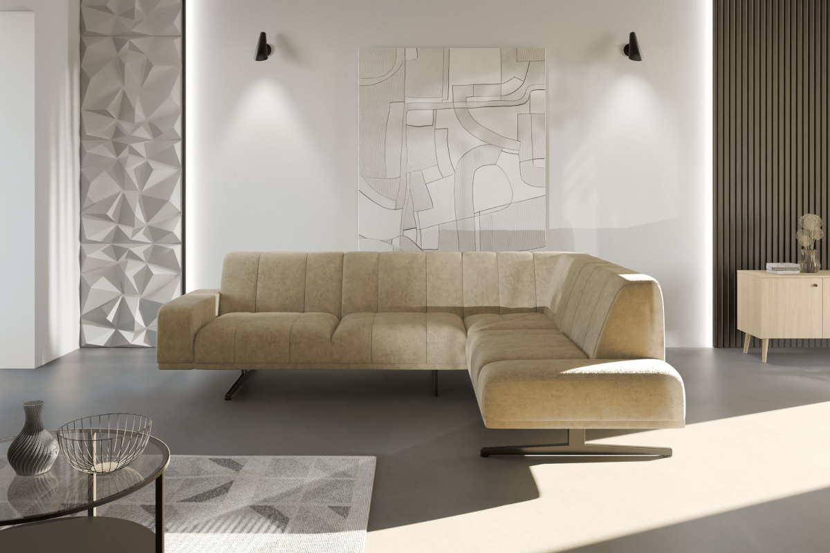 Vzdušný dizajn: Vďaka štíhlym, no extrémne pevným kovovým nohám sedačka pôsobí, akoby sa vznášala. Tento detail ocenia najmä majitelia podlahového kúrenia a robotických vysávačov.