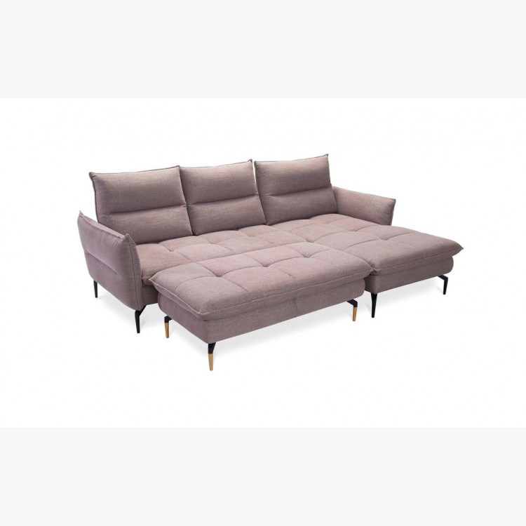 Moderná rohová sedacia súprava AXEL spája minimalistický, vzdušný dizajn s maximálnym komfortom. Vďaka vysokým kovovým nožičkám pôsobí ľahko a elegantne, pričom nastaviteľné opierky chrbta aj ruky umožňujú prispôsobiť si sedenie presne podľa vašich potrieb.
