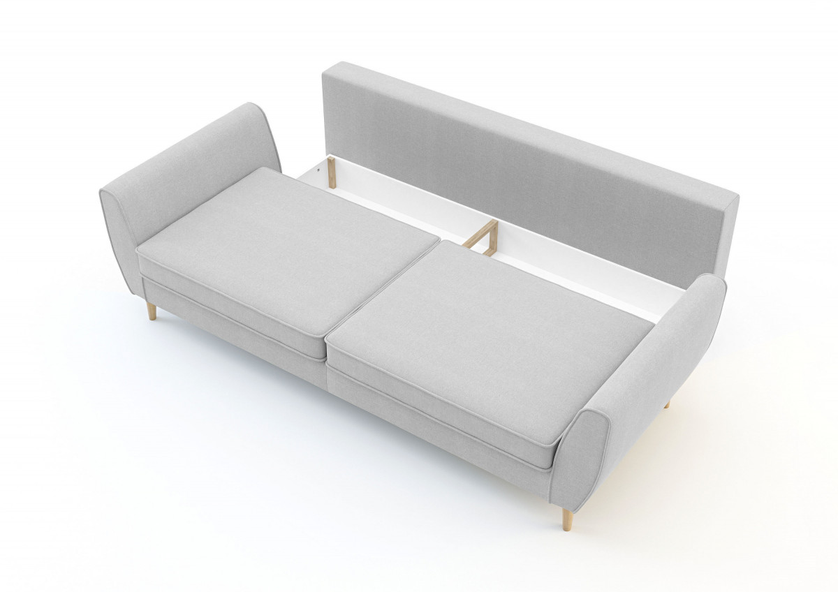 Pohodlná sedacia súprava CANDY 3R+2+1 s rozťahovaním a úložným priestorom v škandinávskom dizajne. Sedacia súprava je položená na nožičkách s masívneho buku o výške 16 cm. Kostra sedačky je vyrobená takisto z bukového masívu v sedacej časti je umiestnená vlnovcová pružina. Opierky chrbta sú vyrobené z kvalitnej PUR peny voľne položené.