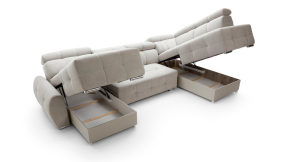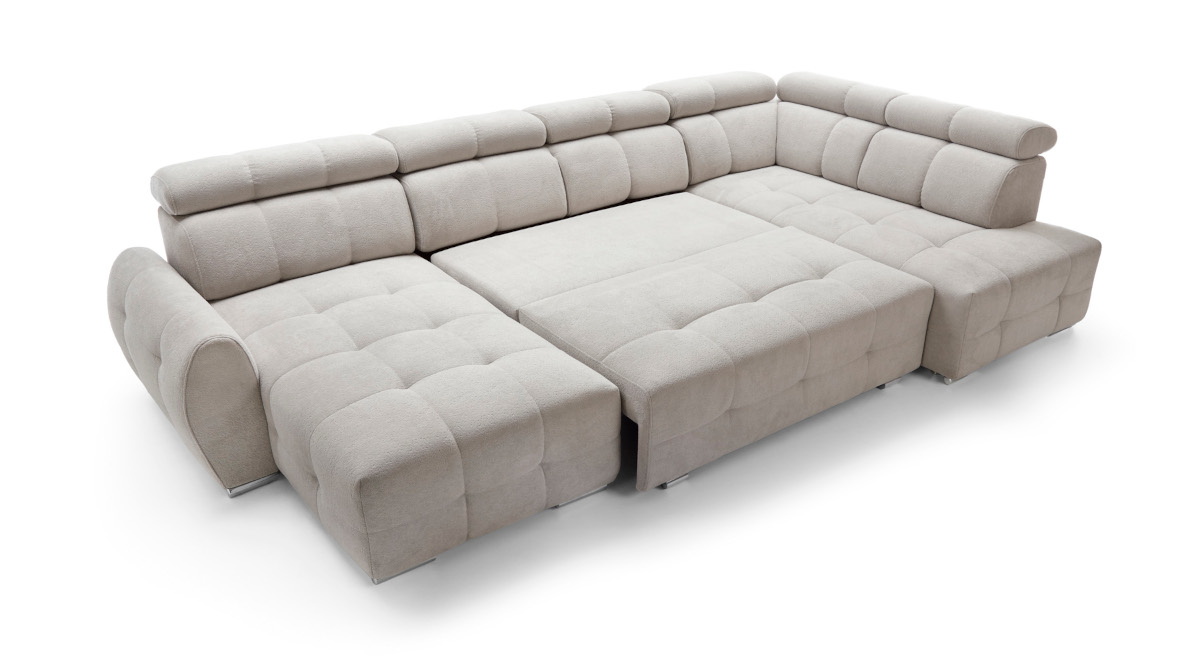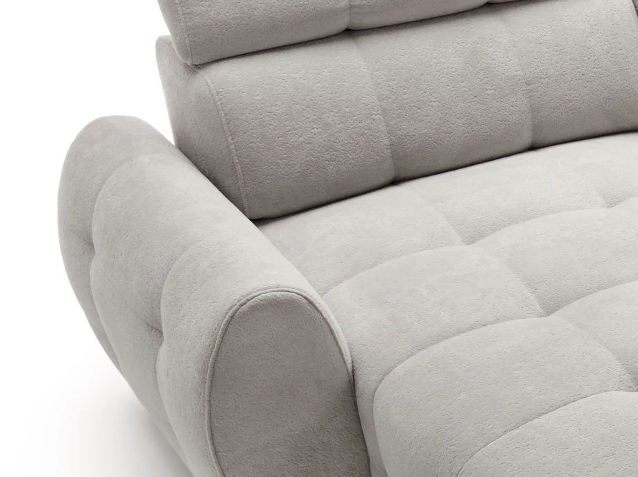 Pohodlie je na prvom mieste – nastaviteľné opierky hlavy a primeraná hĺbka sedenia zaručujú príjemné a pohodlné posedenie pri televízii, rodinných stretnutiach alebo relaxe. Stredná časť sedačky je rozkladacia, čo umožňuje rýchlo a jednoducho premeniť sedačku na lôžko pre hostí. Praktické úložné priestory po oboch stranách poskytujú miesto pre deky, vankúše alebo sezónne doplnky, takže všetko budete mať vždy poruke.