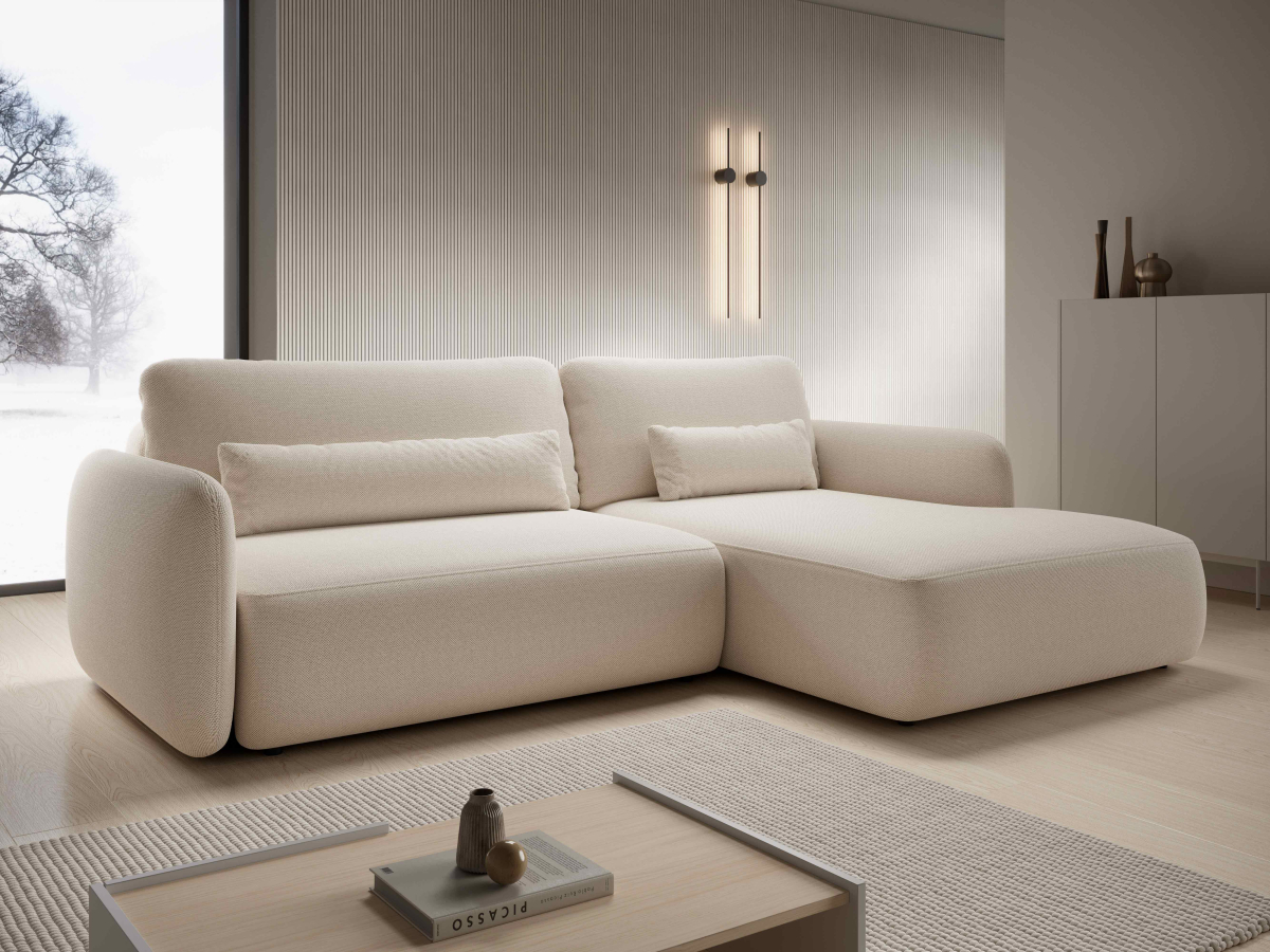 Sedacia súprava MOSSA je dostupná v ľavom aj pravom prevedení, čo umožňuje jej jednoduché umiestnenie do každého rohu. Vďaka svojmu kompaktnému rozmeru je ideálnou voľbou do garsónok, menších bytov alebo interiérov určených na prenájom. Sedačka je dostupná v širokej škále odolných poťahových materiálov, ktoré umožňujú jednoduché ladenie s akýmkoľvek zariadením domácnosti.