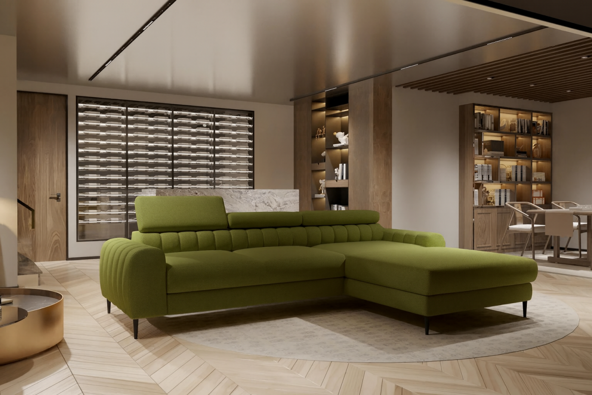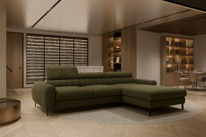 Sedacia súprava NAVAS S zaujme na prvý pohľad svojím moderným vzhľadom a funkčnosťou. Je postavená na vysokých čiernych kovových nožičkách, ktoré jej dodávajú ľahkosť a zároveň uľahčujú upratovanie pod ňou. Vertikálne prešívaná chrbtová opierka dodáva celej súprave elegantný a sofistikovaný vzhľad. Komfort pri sedení zvyšujú nastaviteľné opierky hlavy, vďaka ktorým si jednoducho prispôsobíte polohu podľa svojich potrieb. Súprava je navyše rozkladacia, čo poskytuje pohodlný priestor na príležitostné spanie. Praktickosť dopĺňa úložný priestor ukrytý v otomane, ideálny na odkladanie prikrývok, vankúšov či iných doplnkov.