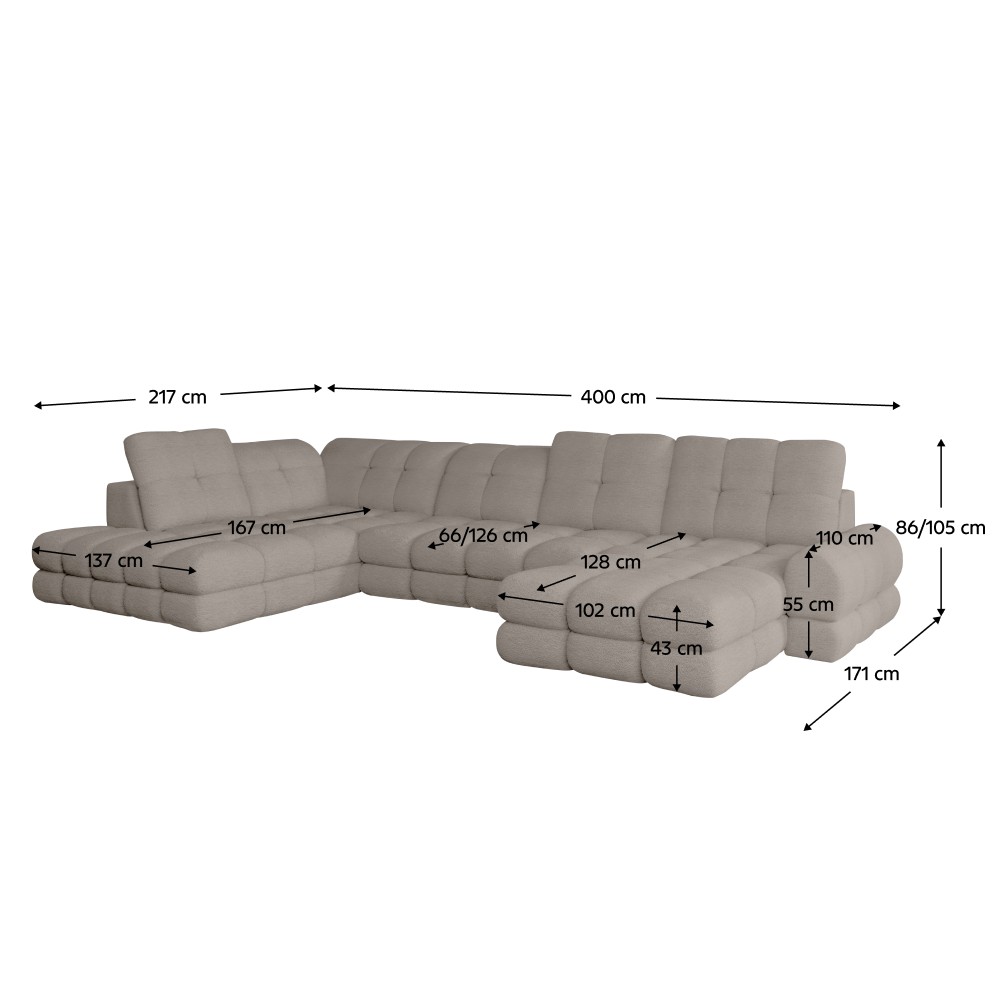 Maximálna plocha pre relax - vďaka veľkorysému rozmeru XL poskytuje dostatok miesta pre veľkú rodinu, filmové večery alebo hostenie priateľov bez akýchkoľvek kompromisov.