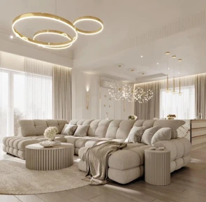 Elegantné detaily - vyvýšené bočné opierky a plynulé línie dodávajú súprave masívny, no zároveň elegantný vzhľad, ktorý zapadne do moderných aj neoklasických priestorov.