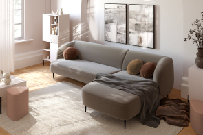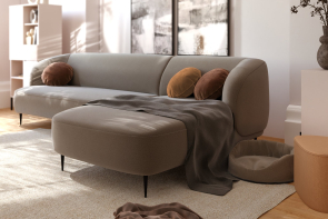 Vzdušný dizajn: Vďaka vysokým nožičkám pôsobí sedačka mimoriadne ľahko aj vo farbe sýtejšej sivej či hnedej.