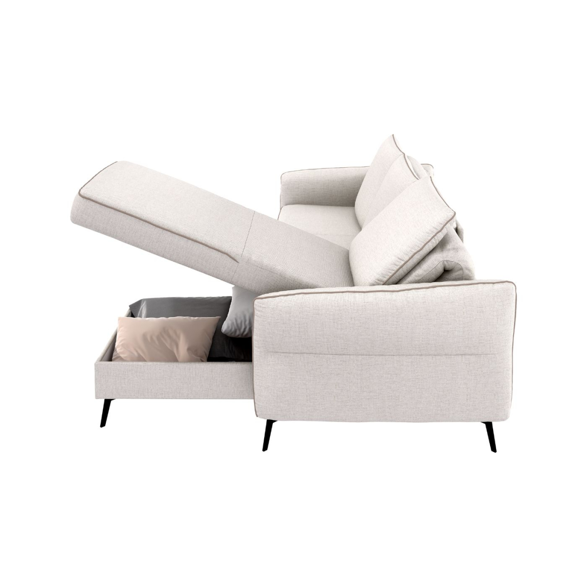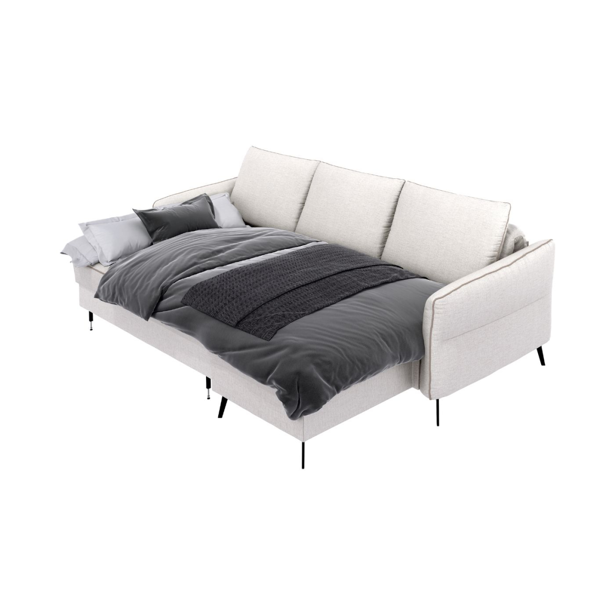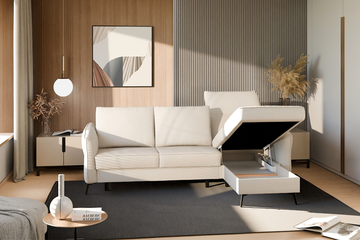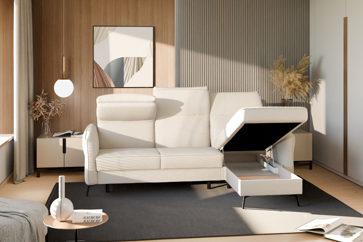 Inteligentný úložný priestor: Integrovaný kontajner diskrétne uschová posteľnú bielizeň, vankúše či deky, čím pomáha udržiavať váš domov uprataný.
