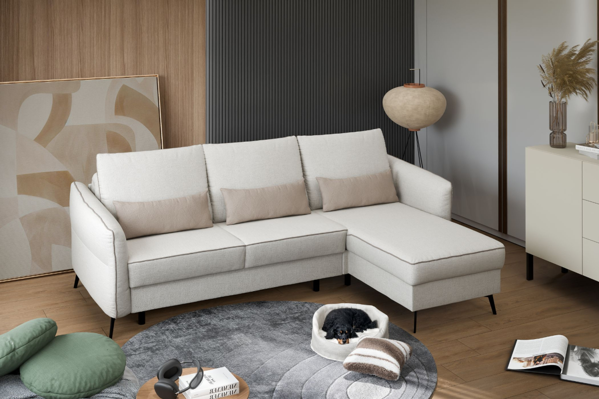 Rohová sedacia súprava VIVA nie je len krásna na pohľad, ale zvládne aj nároky každodenného rodinného života. Sedačka VIVA od renomovaného výrobcu Bydgoskie Meble je navrhnutá pre tých, ktorí odmietajú robiť kompromisy medzi štýlom a praktickosťou.Tento model vyniká čistými líniami a nadčasovým dizajnom, ktorý sa ľahko prispôsobí akémukoľvek interiéru – od minimalistického mestského bytu až po priestranný rodinný dom.