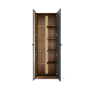 Sektorový nábytok RADIUM - vitrína 1DP č.11,  predstavuje dokonalé spojenie moderného dizajnu, kvalitných materiálov a praktických riešení pre každodenné používanie. Elegantná kombinácia dekoru orech columbia a matnej čiernej farby vytvára nadčasový vzhľad, ktorý dokonale zapadne do moderných aj minimalistických interiérov. Vďaka modulárnemu riešeniu si môžete zostavu prispôsobiť presne podľa svojich potrieb a priestoru. RADIUM ponúka dostatok úložného priestoru pre elektroniku, knihy, dekorácie aj každodenné drobnosti. Obývačkový sektor RADIUM orech columbia – čierna je prémiový sektorový nábytok do obývačky, ktorý spája štýl, funkčnosť a komfort. Vďaka LED osvetleniu, tichému zatváraniu a precíznemu spracovaniu sa stane dominantou vášho interiéru. Integrované LED osvetlenie zarátané v cene, dodáva nábytku luxusný vzhľad a zároveň vytvára príjemnú svetelnú atmosféru v obývačke. Osvetlené vitríny a police zvýraznia dekorácie, knihy či dizajnové doplnky.