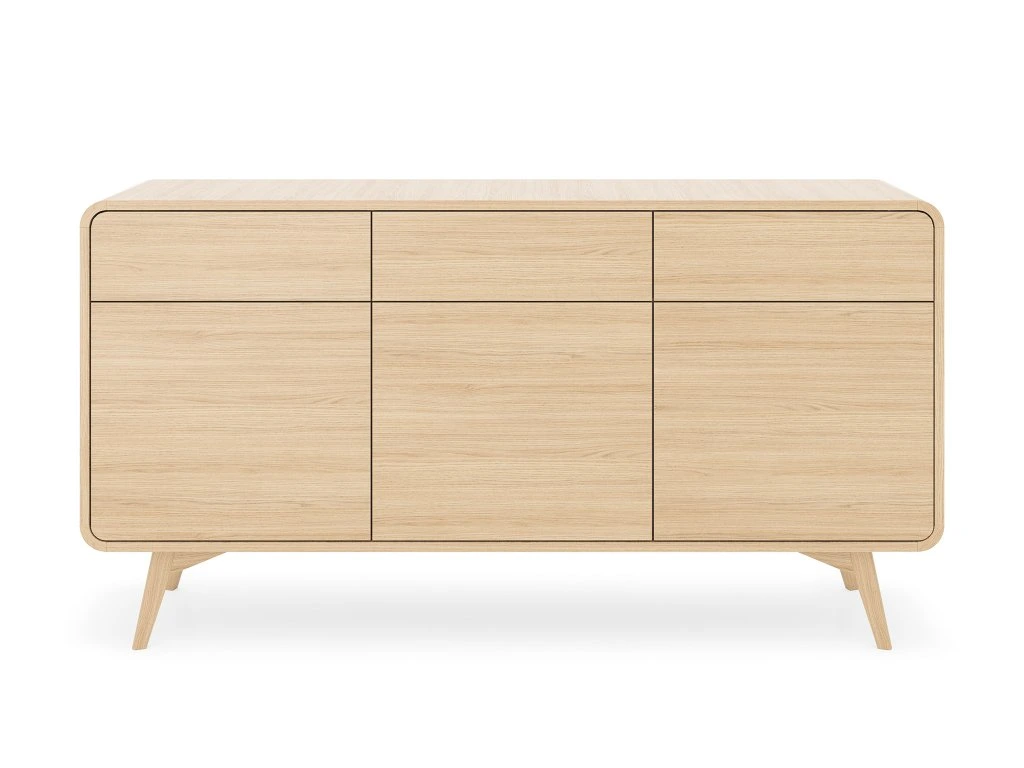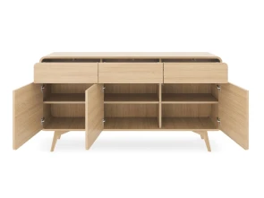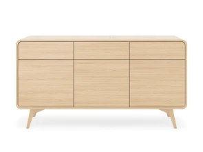 Komoda Helion K160 je vyrobená z kvalitnej laminovanej dosky hrúbky 16 mm s ABS hranami, ktoré zvyšujú odolnosť proti poškodeniu. Štíhle vysoké nožičky a zaoblené rohy korpusu dodávajú komode ľahkosť a mladistvý charakter, zatiaľ čo systém push-to-open zabezpečuje elegantný a čistý vzhľad.