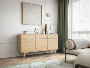 Široká komoda Helion K160 je dokonalou kombináciou funkčnosti a štýlu. Vďaka horným trom zásuvkám máte rýchly prístup k drobnostiam, ako sú dokumenty, kľúče či príbory, zatiaľ čo spodné tri skrinky s policami poskytujú dostatok priestoru na usporiadanie väčších predmetov – od kníh a multimédií po riad a dekorácie.