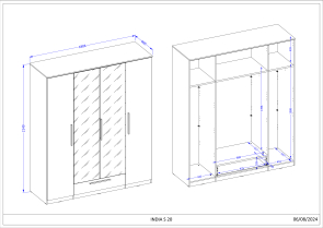Sektorová spálňa INDIA skriňa 4-dverová 24BODE20 - moderný sektorový nábytok do spálne v netradičnom farebnom prevedení schiefer 24B0DE.. Materiál, z ktorého je spálňa vyrobená korusy - certifikovaná laminovaná drevotrieska, dvierka - certifikovaná laminovaná drevotrieska. V skrini, komode, nočnom stolíku je zabudované RGB LED osvetlenie / meniace farbu nastavením na ovládači /, LED osvetlenie je zarátané v cene. Úchytky sú plastové v striebornej farbe, možnosť za príplatok dokúpiť police do skríň v dvoch veľkostiach.